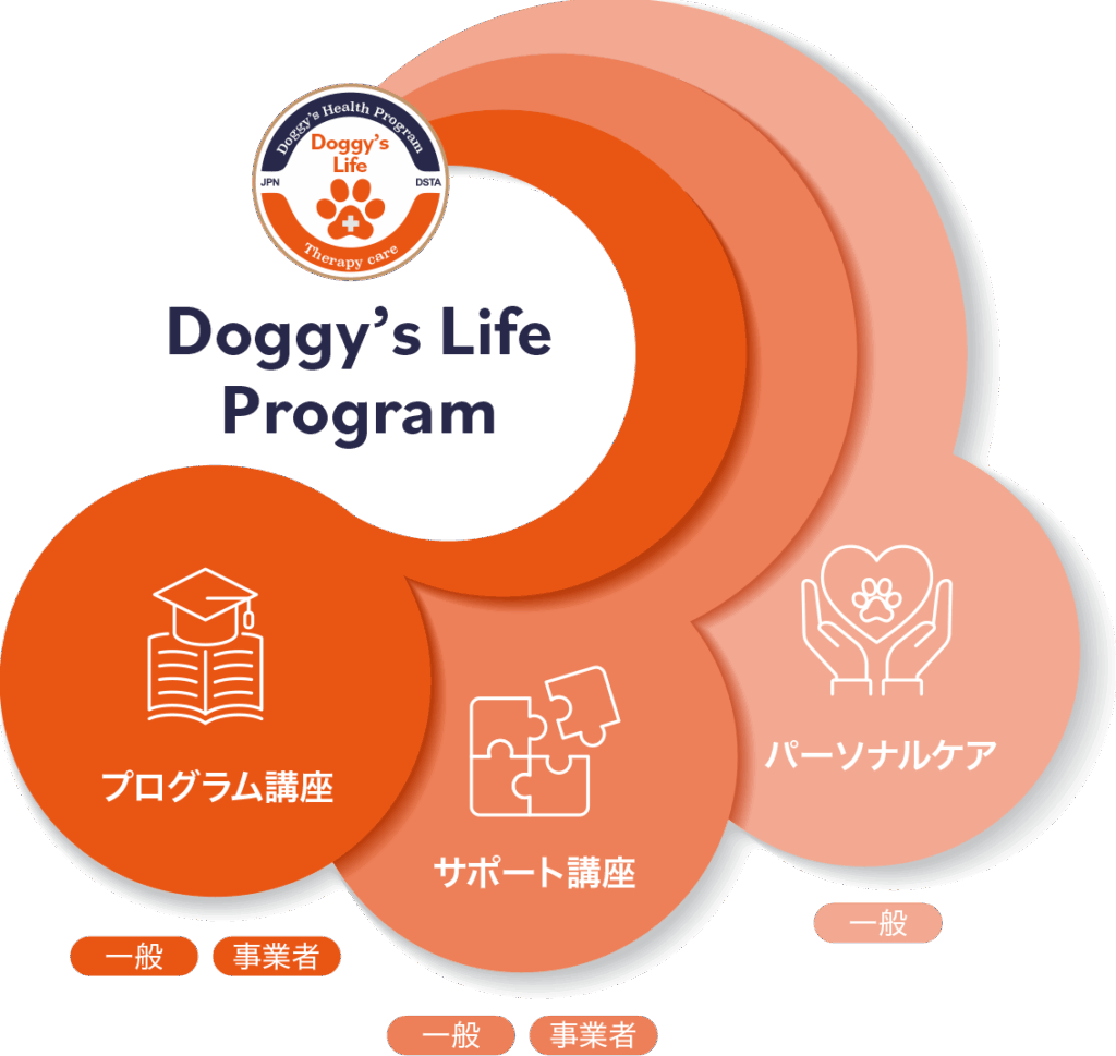ドギーズライフのプログラム講座とは、愛犬と楽しく健やかに過ごせるように毎日の生活で取り入れられるケアをご提案いたします。